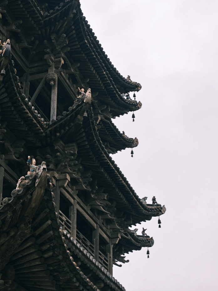 不用一钉一铆,全凭榫卯相扣。这座“中华第一木楼”以它错综复杂的斗拱,向我们诉说着古人如何用木头书写建筑的诗篇。每一根梁柱,都是力与美的完美平衡。站在飞云楼下,抬头是明清的云,低头是当代的影。七十二根通柱撑起的不仅是楼阁,更是一个民族关于建筑智慧的全部想象。